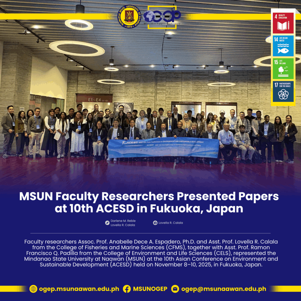 Mindanao State University at Naawan strengthened its global engagement efforts as Chancellor Dr. Elnor C. Roa joined the Philippine delegation to the Canadian Bureau for International Education (CBIE) Annual Conference 2025, along with institutional visits and meetings in Quebec City and Montreal, Canada, from November 1–9, 2025. Organized by the Commission on Higher Education (CHED), the mission aimed to reinforce the Philippines–Canada partnership in internationalization, capacity building, and transnational higher education (TNHE). During the conference, Chancellor Roa actively participated in engagements with Canadian higher education institutions (HEIs), provincial government partners, and sustainability networks to explore opportunities for joint programs, faculty and student mobility, and collaborative research initiatives. The delegation also highlighted the strengths and global engagement efforts of Philippine HEIs, including MSUN, while gaining insights into emerging trends in international education and best practices from Canadian institutions. Key objectives of the mission included strengthening the CHED–CBIE collaboration, promoting the Philippine higher education sector in international platforms, and establishing long-term partnerships with Canadian stakeholders. As part of the mission’s outputs, the delegation will produce a comprehensive post-mission report, conduct debriefing and re-echoing sessions with CHED and HEIs, and develop a roadmap of planned collaborative activities aligned with national and ASEAN Chairmanship priorities. The mission also supported the expansion of the Philippines–Canada Network for Sustainability (PCNS) to foster academic and research partnerships focused on sustainability. Furthermore, a delivery HEI partner will be identified to support CHED’s Leading Internationalization Project, ensuring exposure to Canadian best practices in higher education internationalization. MSUN’s participation through Chancellor Roa is expected to contribute significantly to strengthening institutional capacity, expanding global linkages, and promoting innovation in academic and research programs. The activity is also expected to support the long-term outcomes of the CHED–CBIE partnership, including the formalization of collaborative agreements between Philippine and Canadian institutions, enhanced visibility of Philippine higher education, and improved benchmarking against international TNHE practices. Chancellor Roa emphasized that MSU at Naawan’s involvement in this mission reinforces the university’s commitment to global collaboration, quality education, and transformative research. The insights and partnerships developed in Canada will help shape new pathways for academic mobility, research innovation, and sustainable development initiatives, positioning MSUN as a forward-looking institution dedicated to international excellence.
