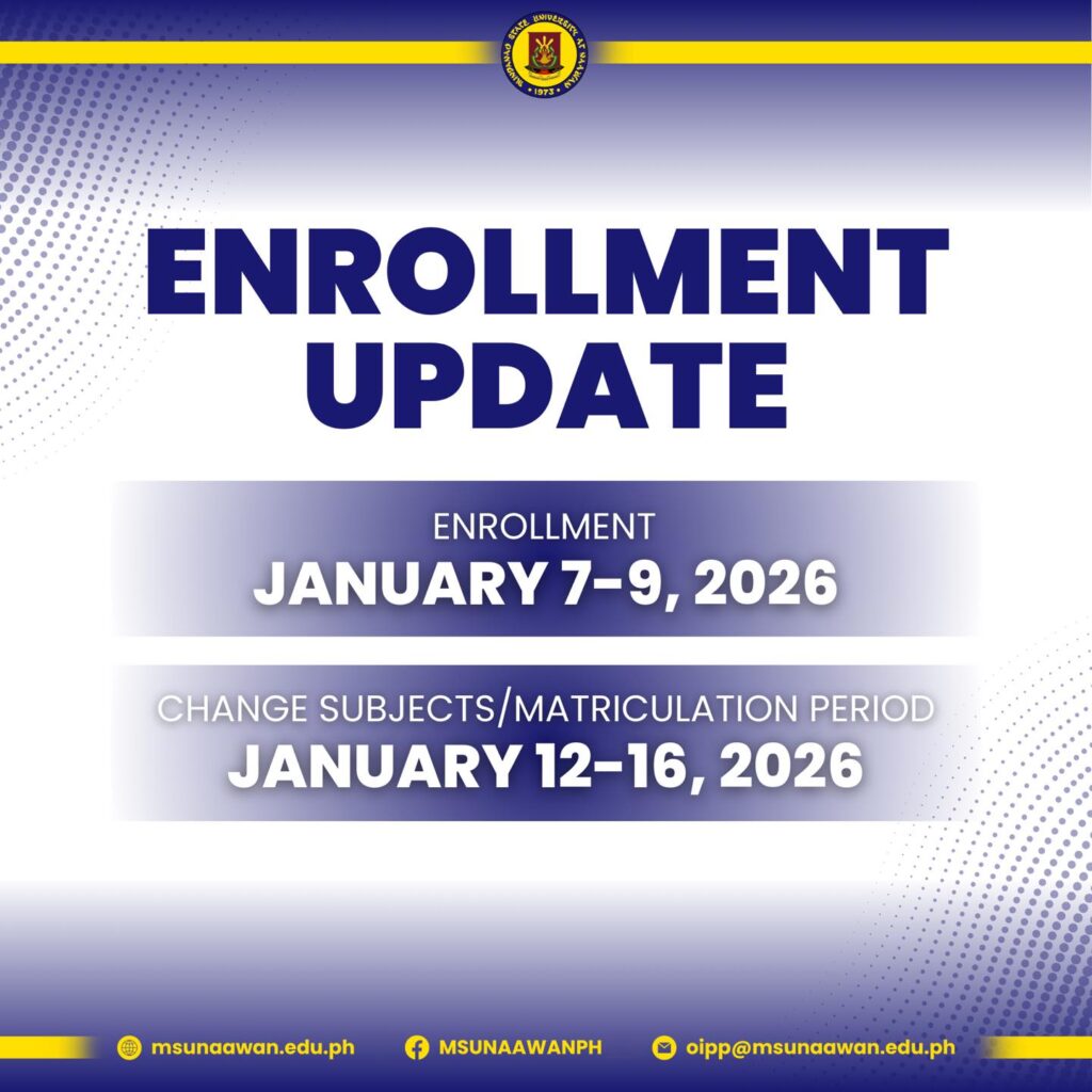 Mark your calendars and complete your enrollment on time as we prepare for a new semester of learning and growth at MSU at Naawan.