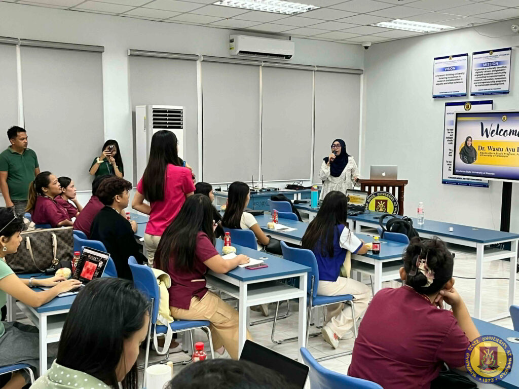 The activity featured Dr. Wastu Ayu Diamahesa from the Aquaculture Study Program, Faculty of Agriculture, University of Mataram, who served as the resource speaker during her visit to MSU at Naawan from April 22–25, 2026.
